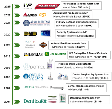 Wide range of industries including: medical, pharmaceutical, food/beverage, agricultural, and heavy equipment sectors.